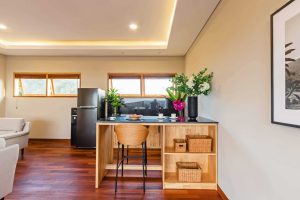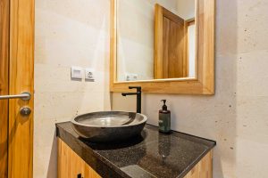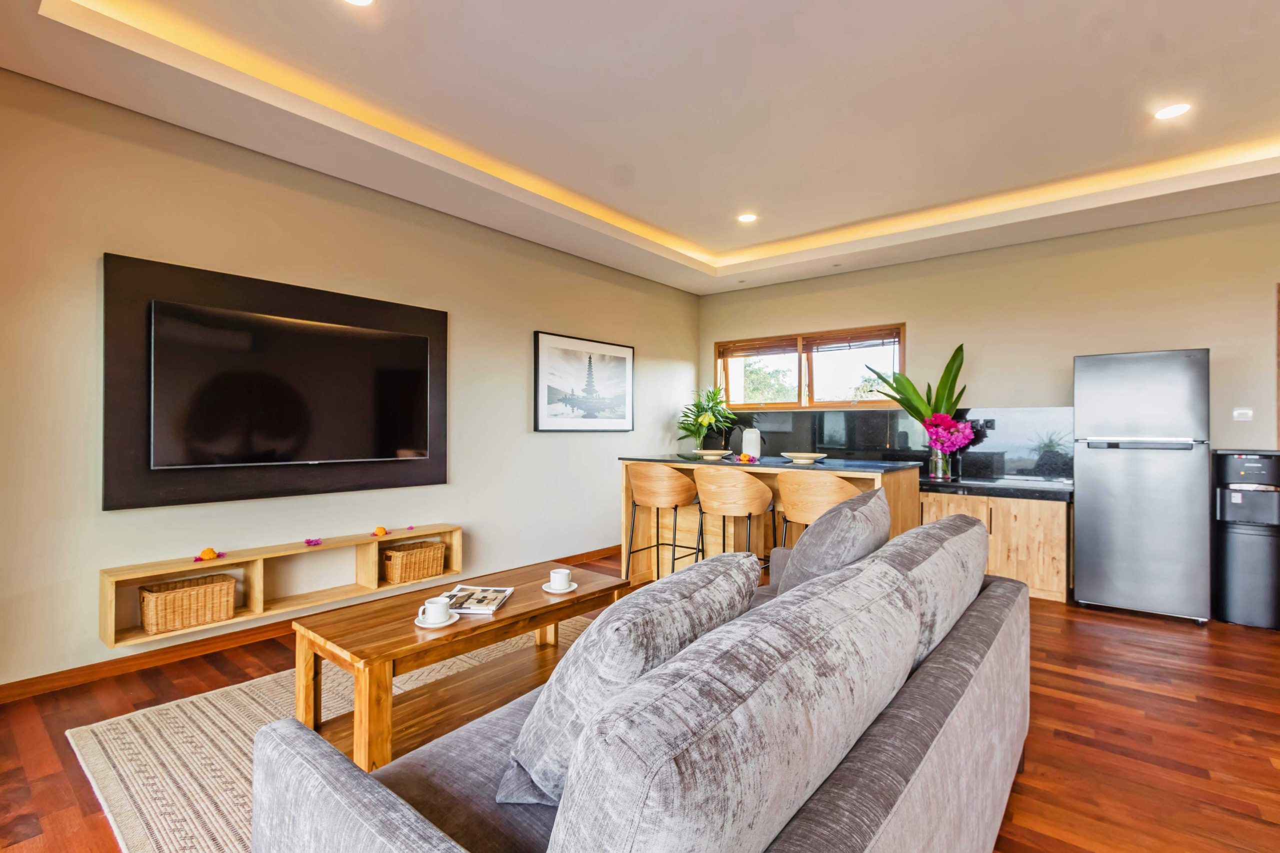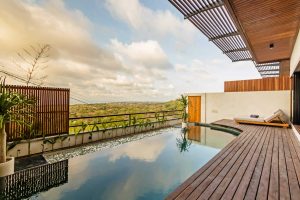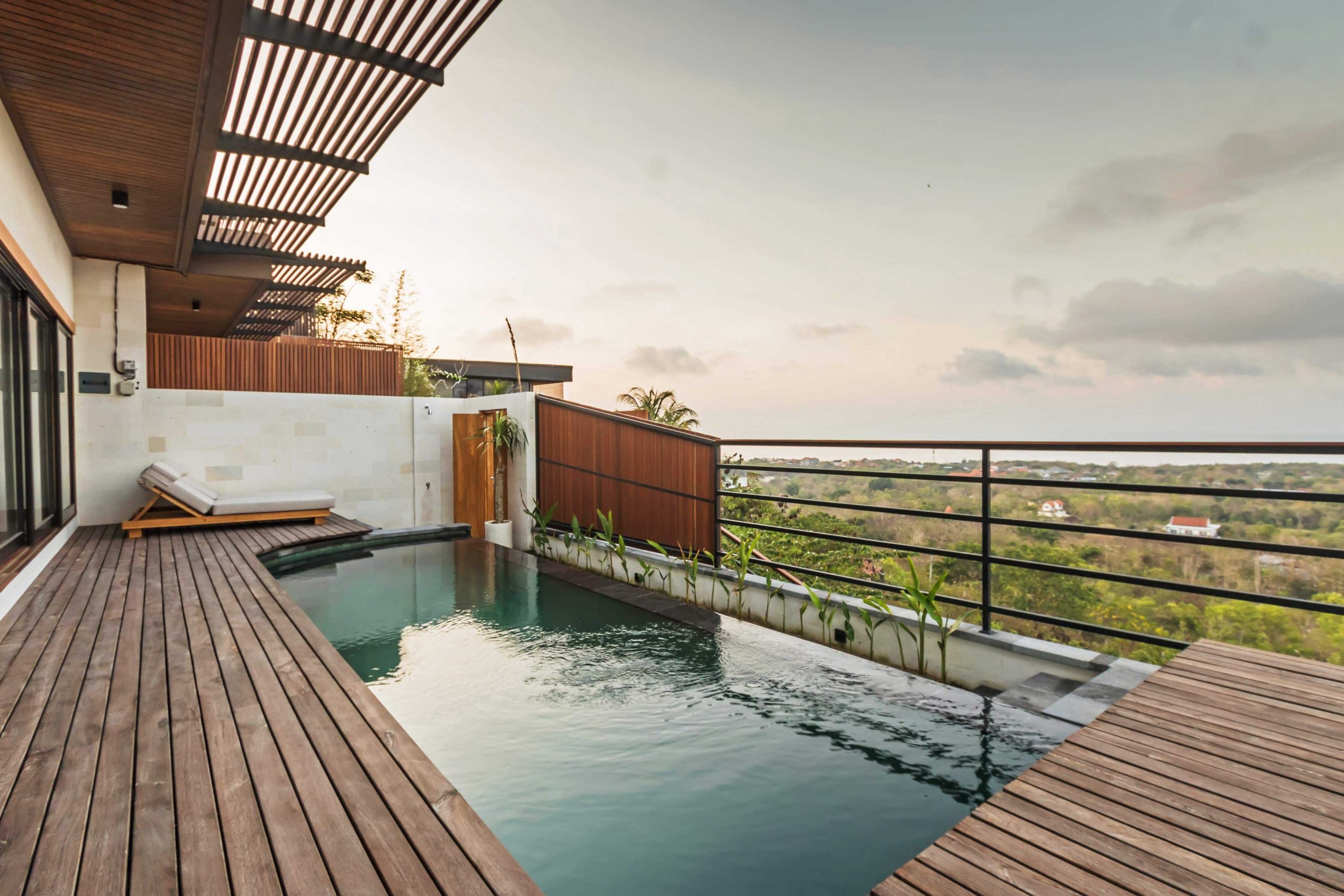 Kick back and relax in this calm, stylish space. Perched on top of the Uluwatu hills this lovely private pool 1 bedroom villa has you overlooking the treetops of Uluwatu to the Indian ocean. Enjoy this secluded location and relax in comfort with a fully equipped kitchen and dining room, comfortable bedroom with ensuite and large outdoor pool deck and pool. Please note construction is happening near by.